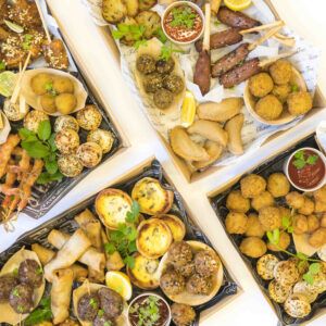Flavours have a large variety of party finger food served both cold and warm. The corn fritters and peking duck pancakes are some of the most popular party finger food, however you can’t forget the vegetarian spring rolls or the arancini balls.