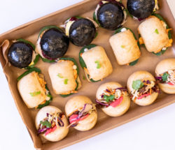15 mini breads (served cold) Italian roll of cured ham, roasted capsicum, avocado, spinach & herb Baby black brioche, pesto chicken, cucumber, mint raita, butter lettuce Vegan grilled veggie ciabatta, roc... read more