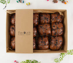Each box contains 6 Hot Cross Buns (3 chocolate + 3 fruit) Mini Easter Egg Garnish Butter portions All beautifully packaged & ideal as an Easter gift NOTE: a minimum order of $100 applies to all weekday deliveries *due to demand... read more